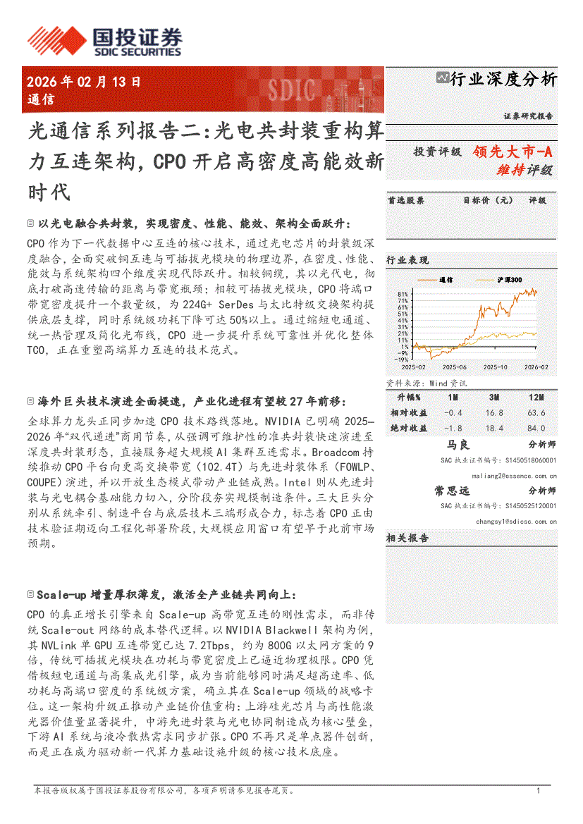 光通信行业:国投证券-光通信行业系列报告二:光电共封装重构算力互连架构,CPO开启高密度高能效新时代-260213