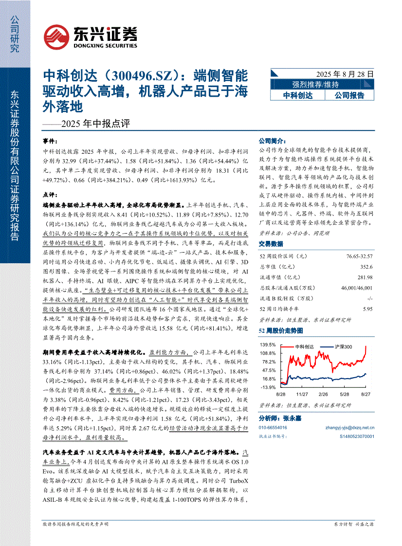 中科创达:东兴证券-中科创达-300496-2025年中报点评:端侧智能驱动收入高增,机器人产品已于海外落地-250828