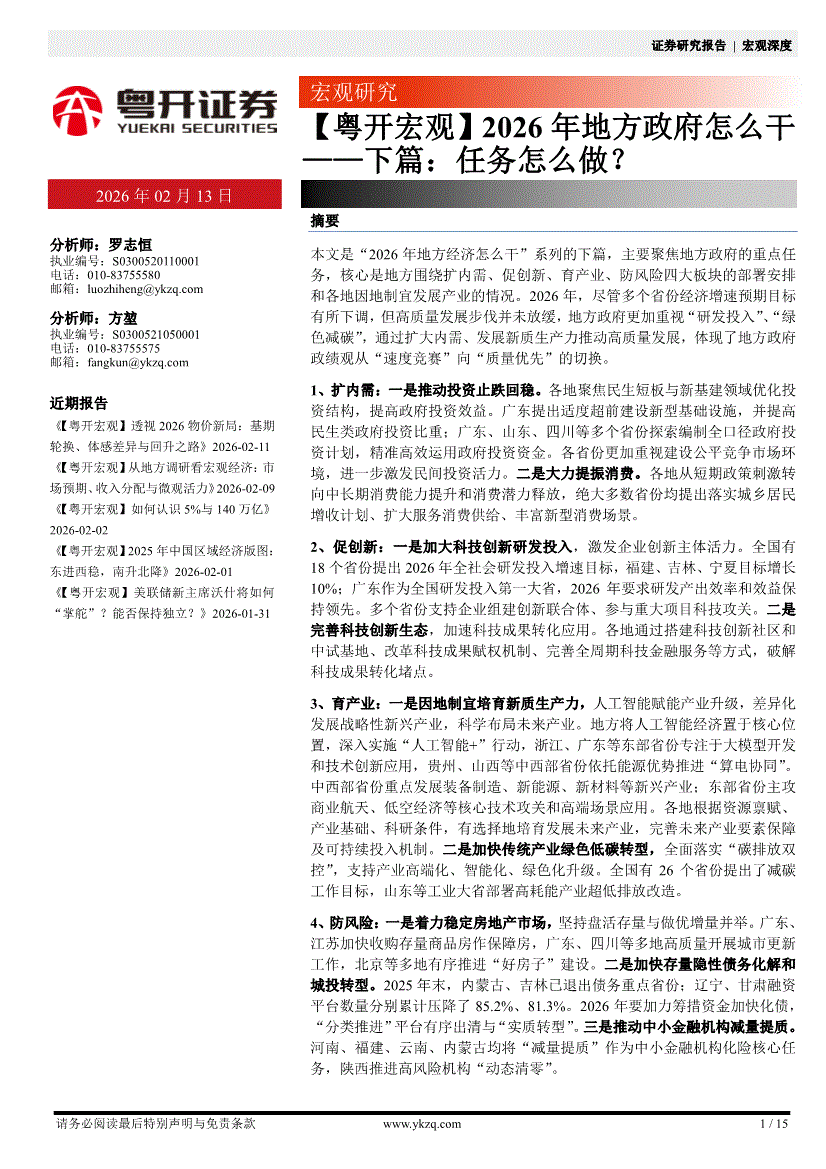 粤开证券-【粤开宏观】2026年地方政府怎么干——下篇:任务怎么做?-260213