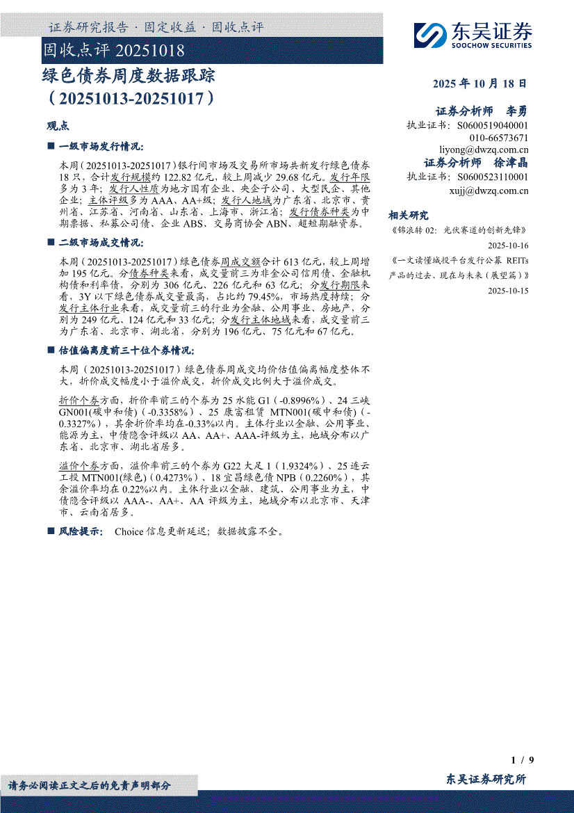 东吴证券-固收点评:绿色债券周度数据跟踪-251018