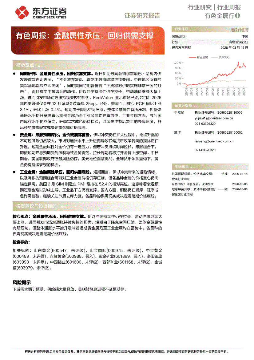 有色金属行业:东方证券-有色行业周报:金融属性承压,回归供需支撑-260315