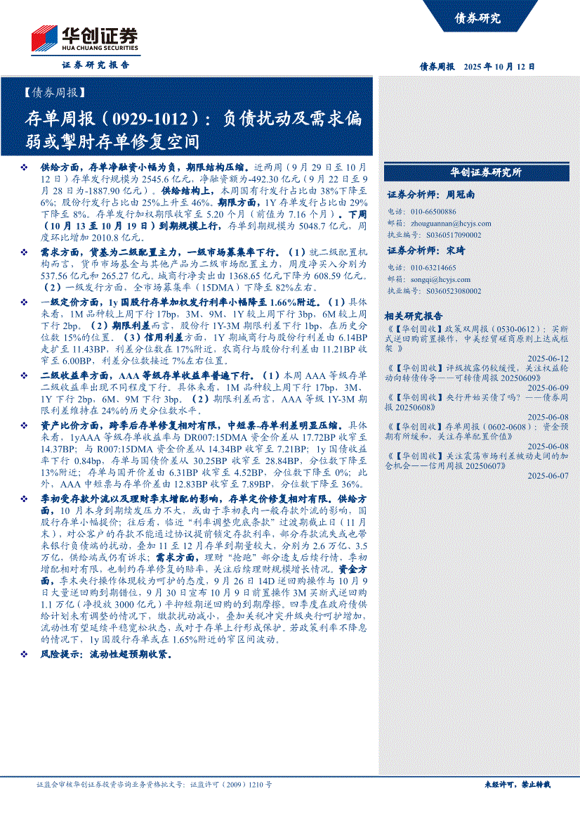 华创证券-【债券周报】存单周报(0929~1012):负债扰动及需求偏弱或掣肘存单修复空间-251012