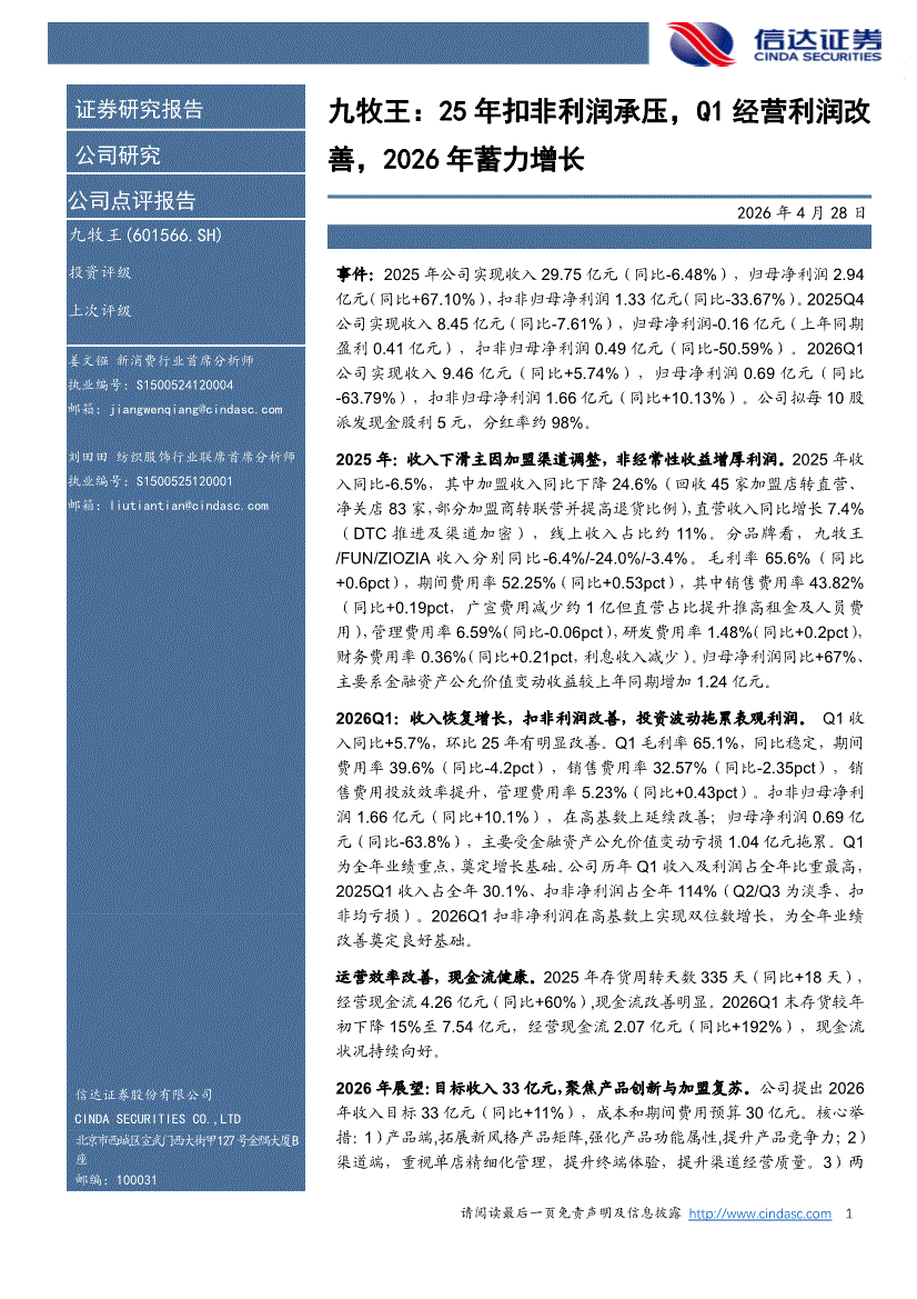 九牧王:信达证券-九牧王-601566-25年扣非利润承压,Q1经营利润改善,2026年蓄力增长-260428