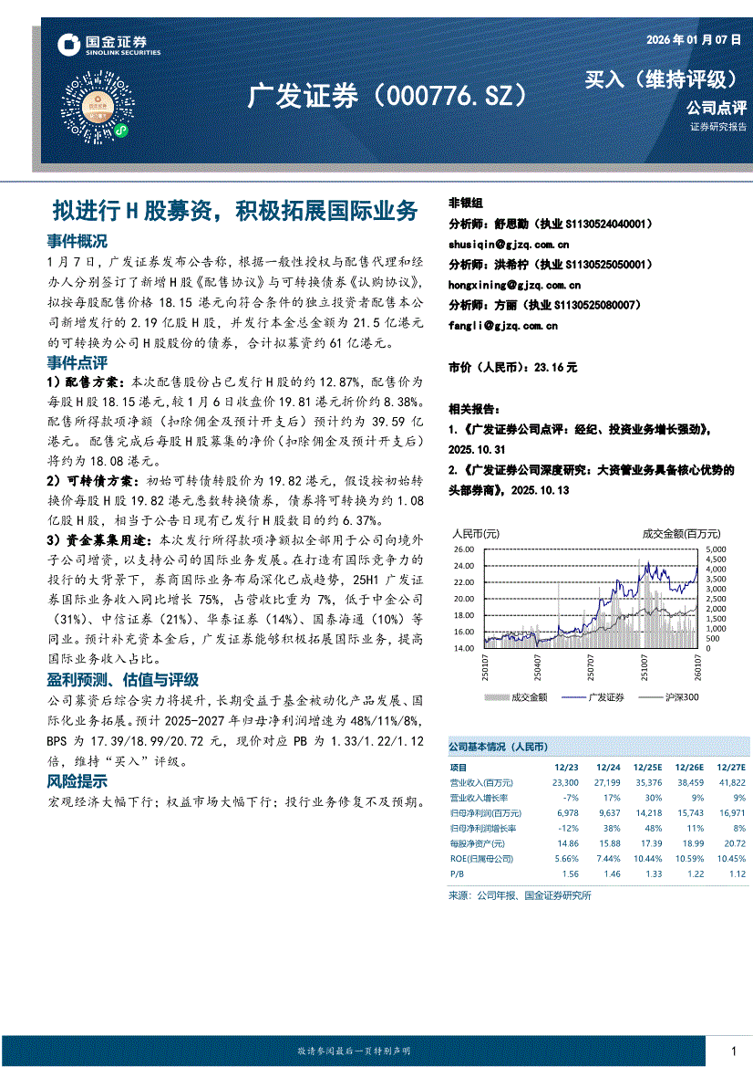 广发证券:国金证券-广发证券-000776-拟进行H股募资,积极拓展国际业务-260107