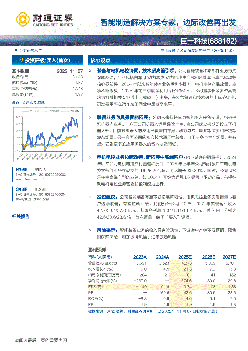 巨一科技:财通证券-巨一科技-688162-智能制造解决方案专家,边际改善再出发-251109