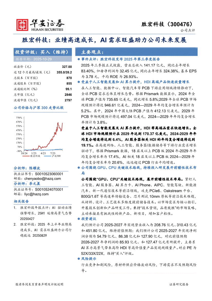 胜宏科技:华安证券-胜宏科技-300476-业绩高速成长,AI需求旺盛助力公司未来发展-251029