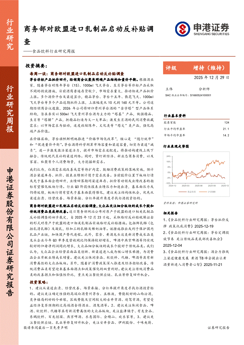 食品饮料行业:申港证券-食品饮料行业研究周报:商务部对欧盟进口乳制品启动反补贴调查-251229