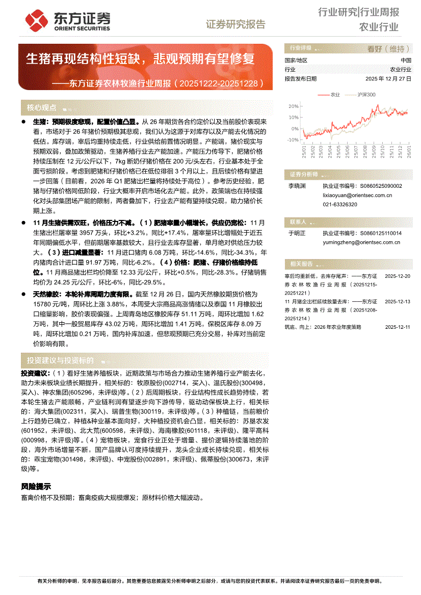 农林牧渔行业:东方证券-农林牧渔行业周报:生猪再现结构性短缺,悲观预期有望修复-251227