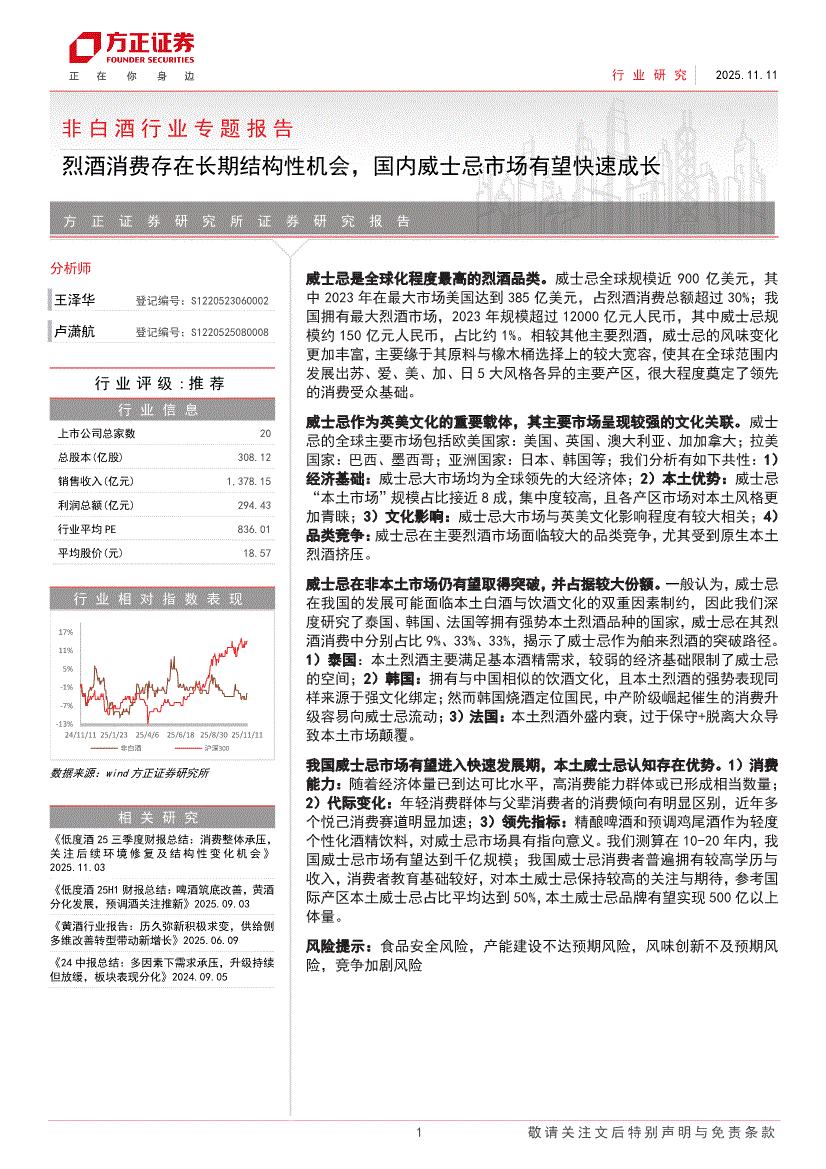 非白酒行业:方正证券-非白酒行业专题报告:烈酒消费存在长期结构性机会,国内威士忌市场有望快速成长-251111