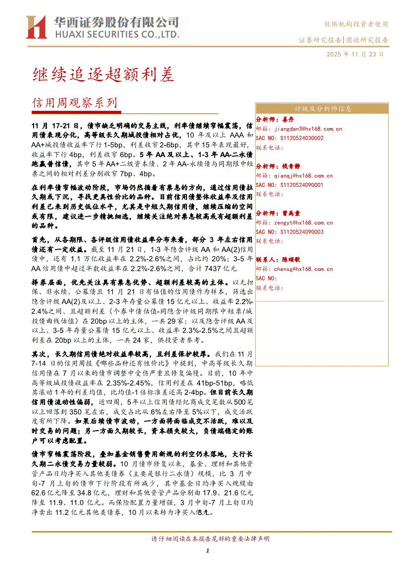 华西证券-信用周观察系列:继续追逐超额利差-251123