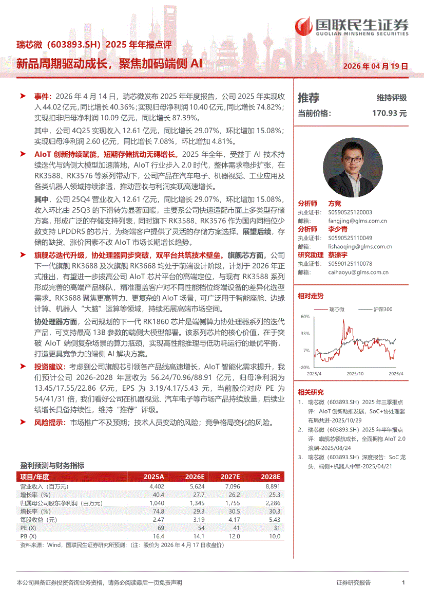 瑞芯微:国联民生证券-瑞芯微-603893-2025年年报点评:新品周期驱动成长,聚焦加码端侧AI-260419