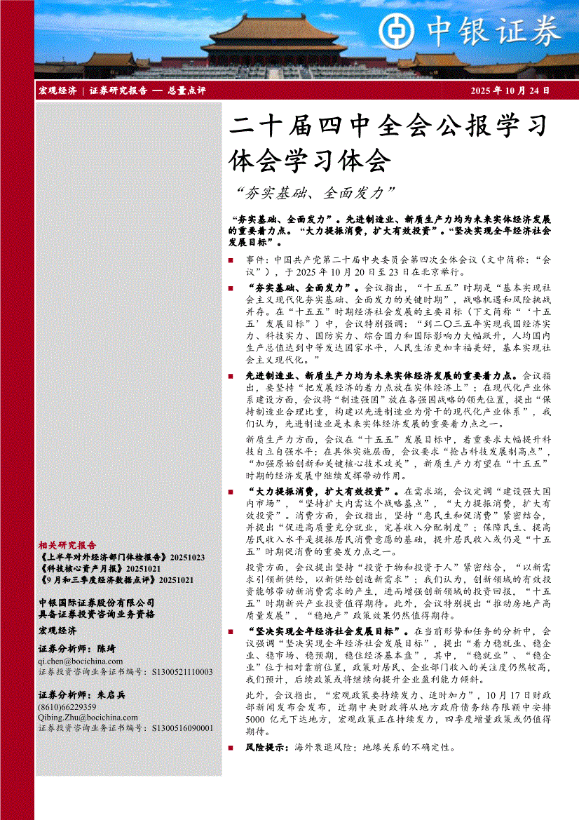 中银国际-二十届四中全会公报学习体会学习体会:“夯实基础、全面发力”-251024