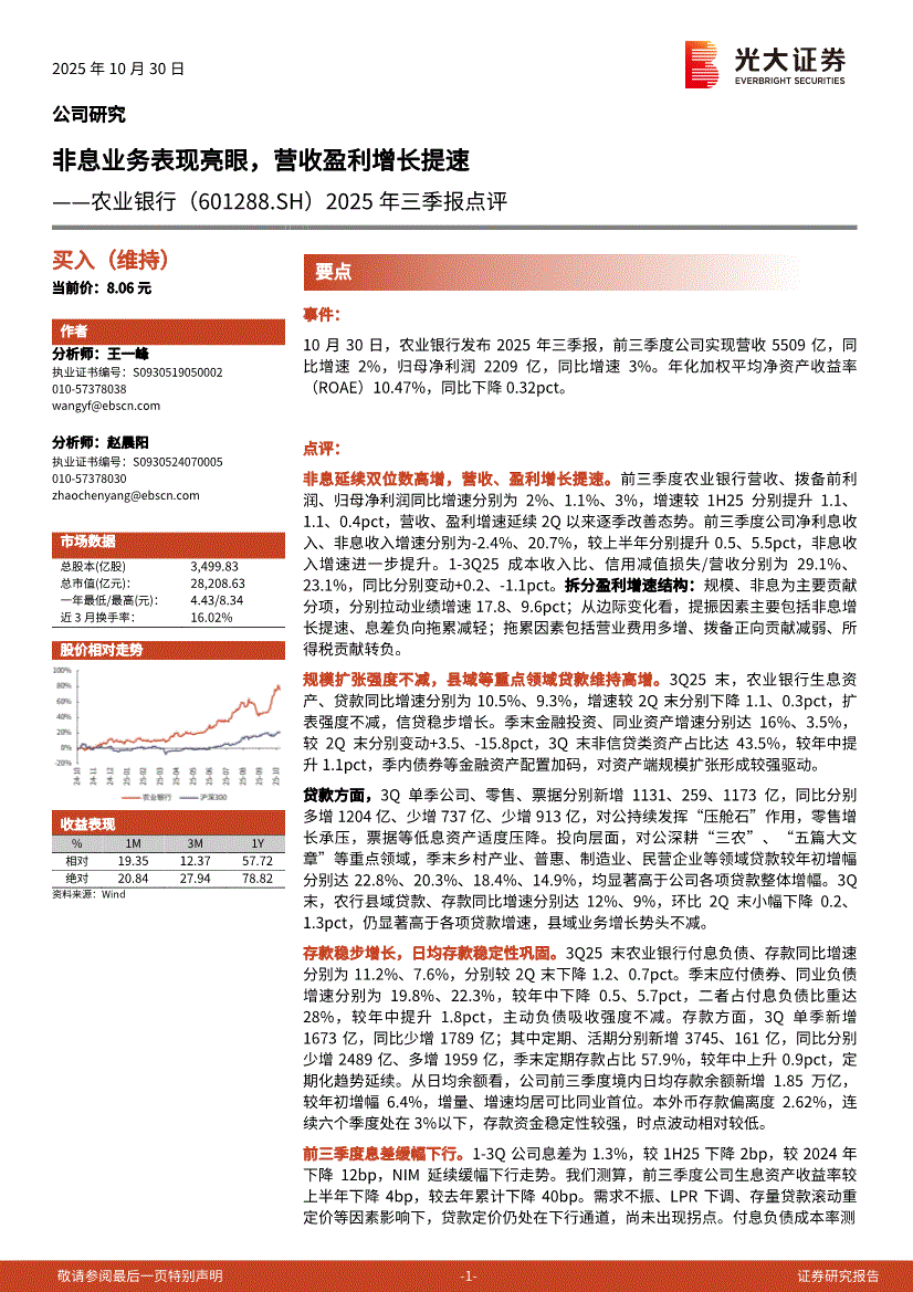 农业银行:光大证券-农业银行-601288-2025年三季报点评:非息业务表现亮眼,营收盈利增长提速-251030