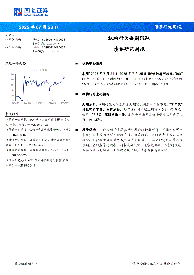 国海证券-债券研究周报:机构行为每周跟踪-250728