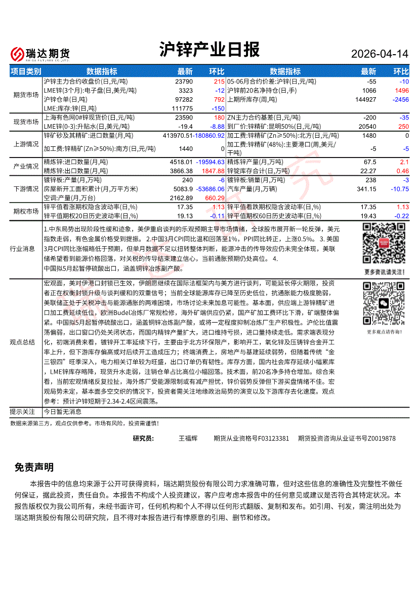 瑞达期货-沪锌市场周报:宏观波动去库尚缓,预计锌价区间震荡-260417