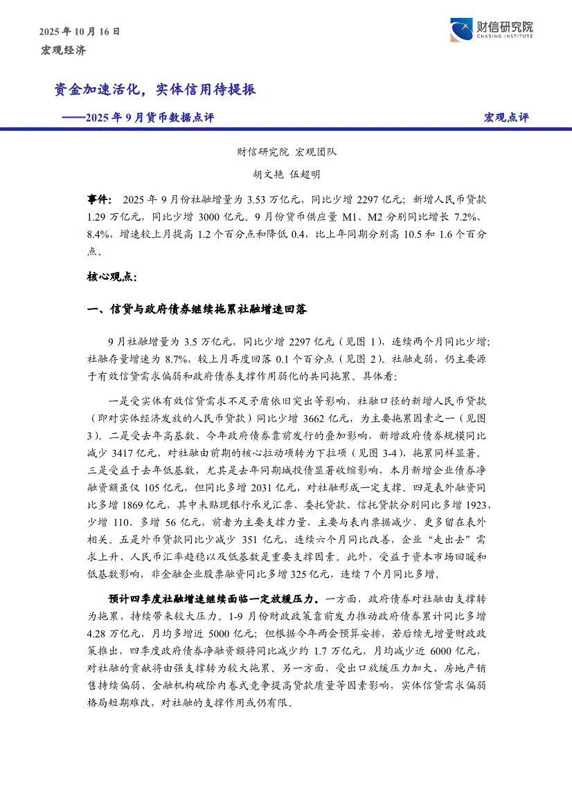 财信国际经济研究院-2025年9月货币数据点评:资金加速活化,实体信用待提振-251016