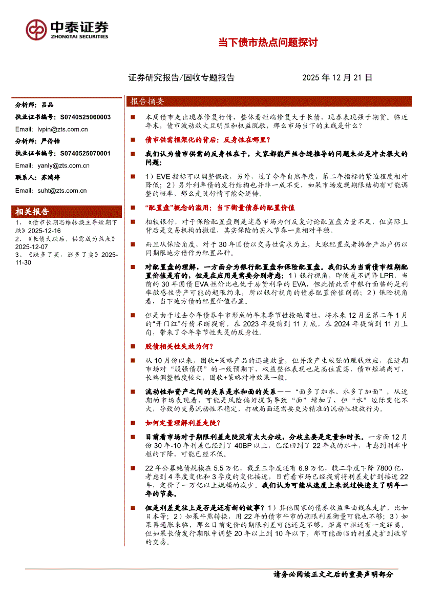 中泰证券-固收专题报告:当下债市热点问题探讨-251221