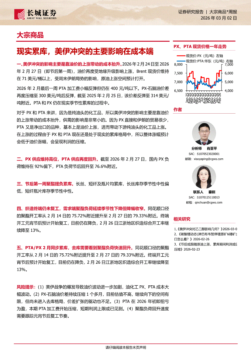 长城证券-大宗商品:现实累库,美伊冲突的主要影响在成本端-260302