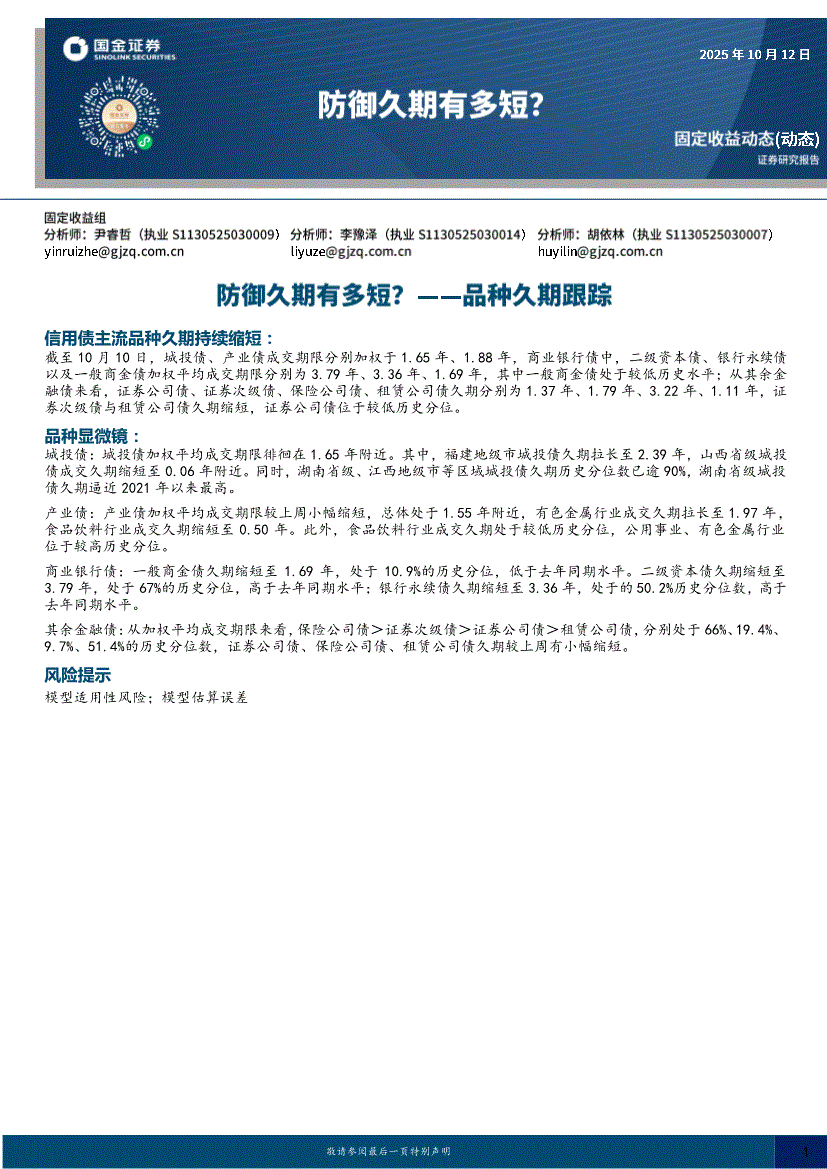 国金证券-防御久期有多短?——品种久期跟踪-251012