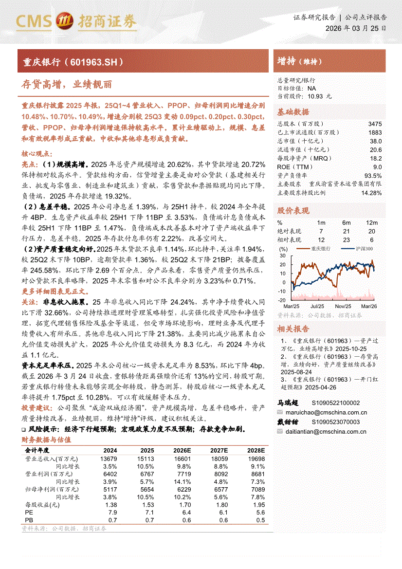 重庆银行:招商证券-重庆银行-601963-存贷高增,业绩靓丽-260325