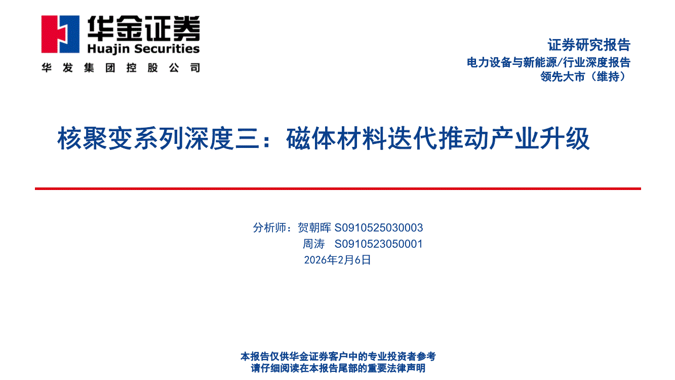 电力设备与新能源行业:华金证券-电力设备与新能源行业核聚变系列深度三:磁体材料迭代推动产业升级-260206