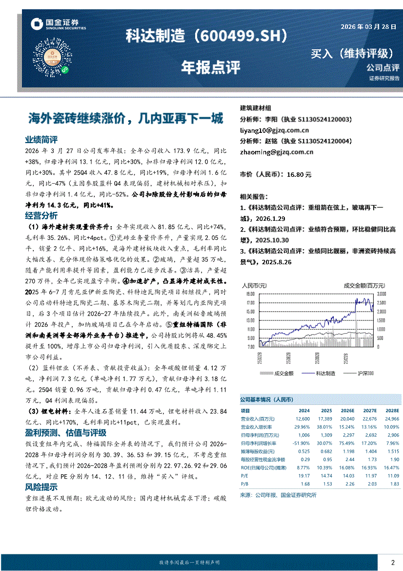 国金证券-科达制造-600499-年报点评:海外瓷砖继续涨价,几内亚再下一城-260328
