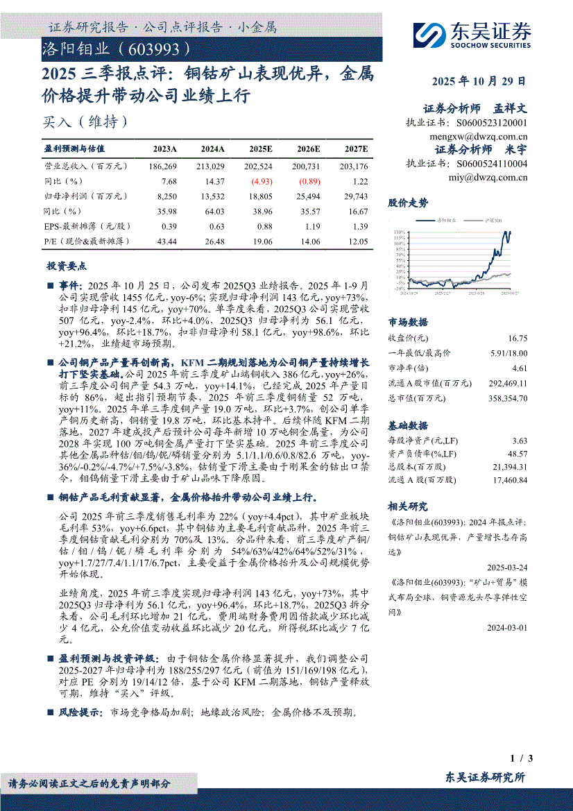 洛阳钼业:东吴证券-洛阳钼业-603993-2025三季报点评:铜钴矿山表现优异,金属价格提升带动公司业绩上行-251029
