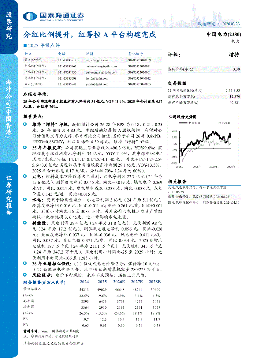 中国电力:国泰海通证券-中国电力-2380.HK-2025年报点评:分红比例提升,红筹控A平台构建完成-260323