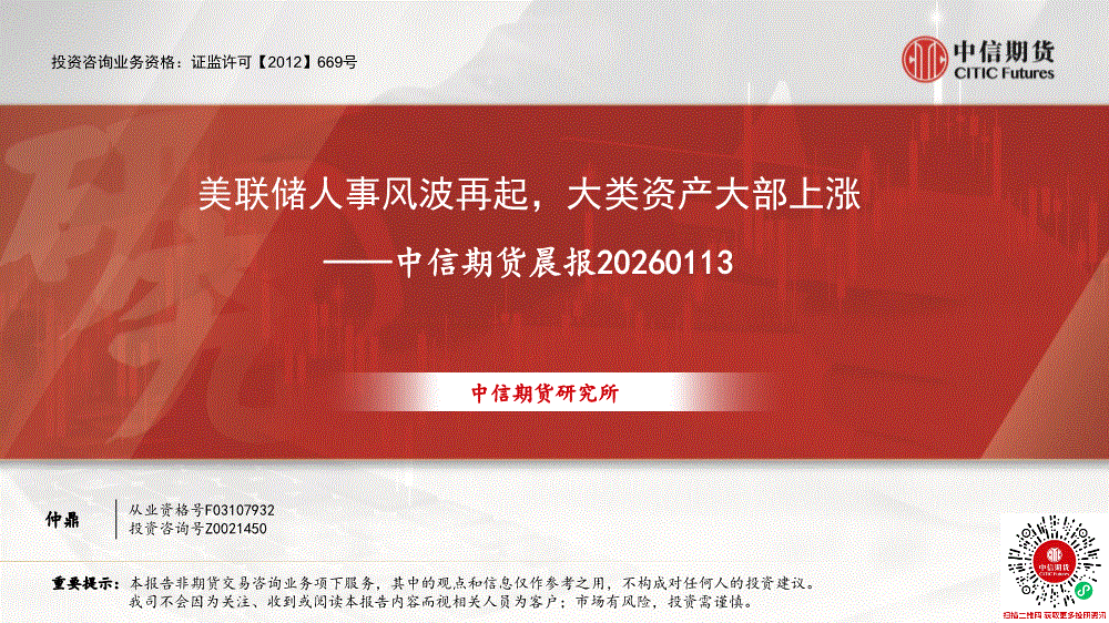 中信期货-晨报:美联储人事风波再起,大类资产大部上涨-260113
