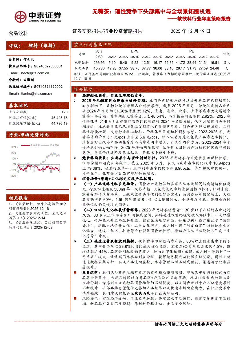软饮料行业:中泰证券-软饮料行业年度策略报告:无糖茶,理性竞争下头部集中与全场景拓圈机遇-251219