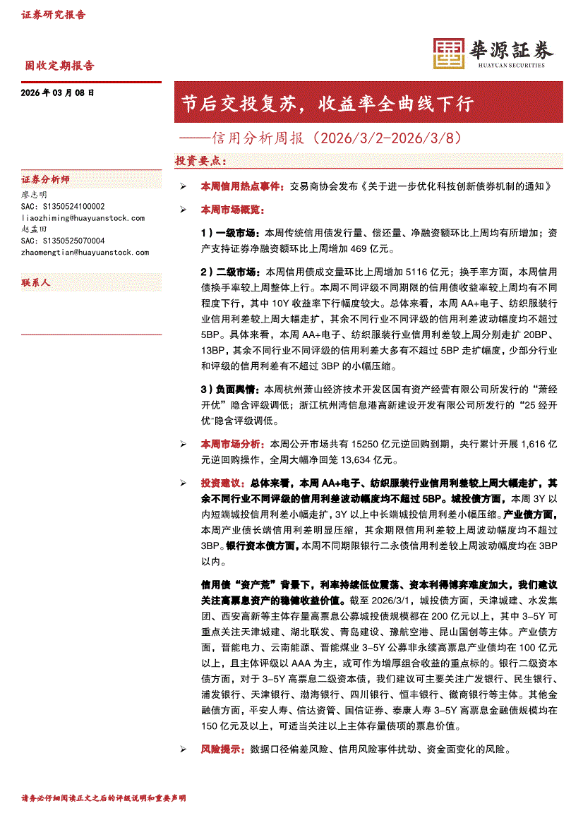 华源证券-信用分析周报:节后交投复苏,收益率全曲线下行-260308