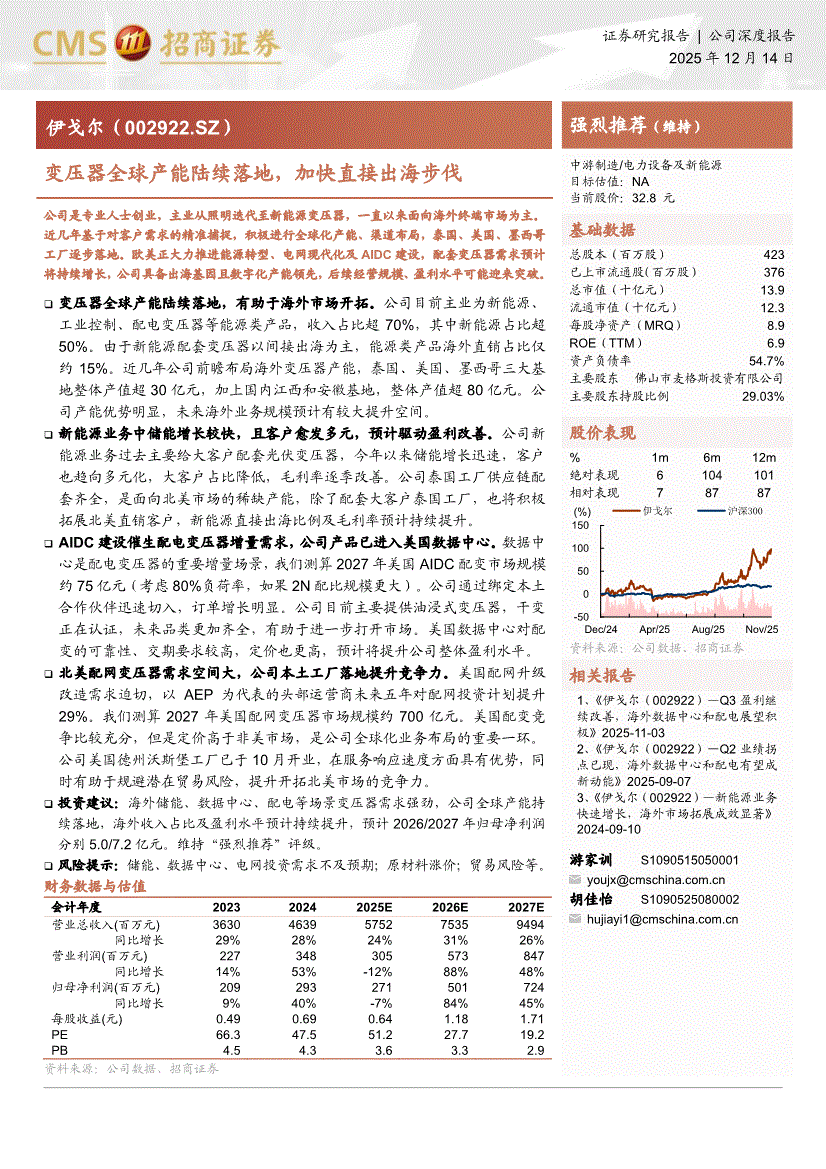 伊戈尔:招商证券-伊戈尔-002922-变压器全球产能陆续落地,加快直接出海步伐-251214