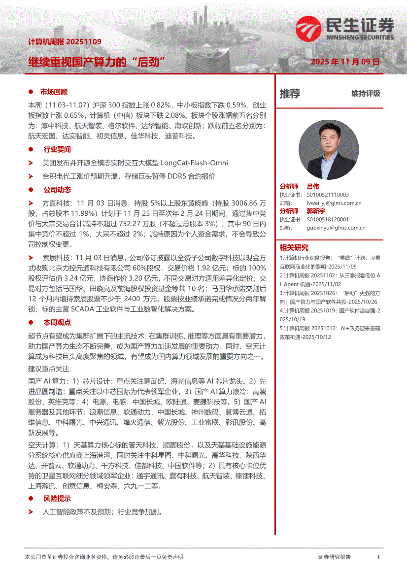 计算机行业:民生证券-计算机行业周报:继续重视国产算力的“后劲”-251109