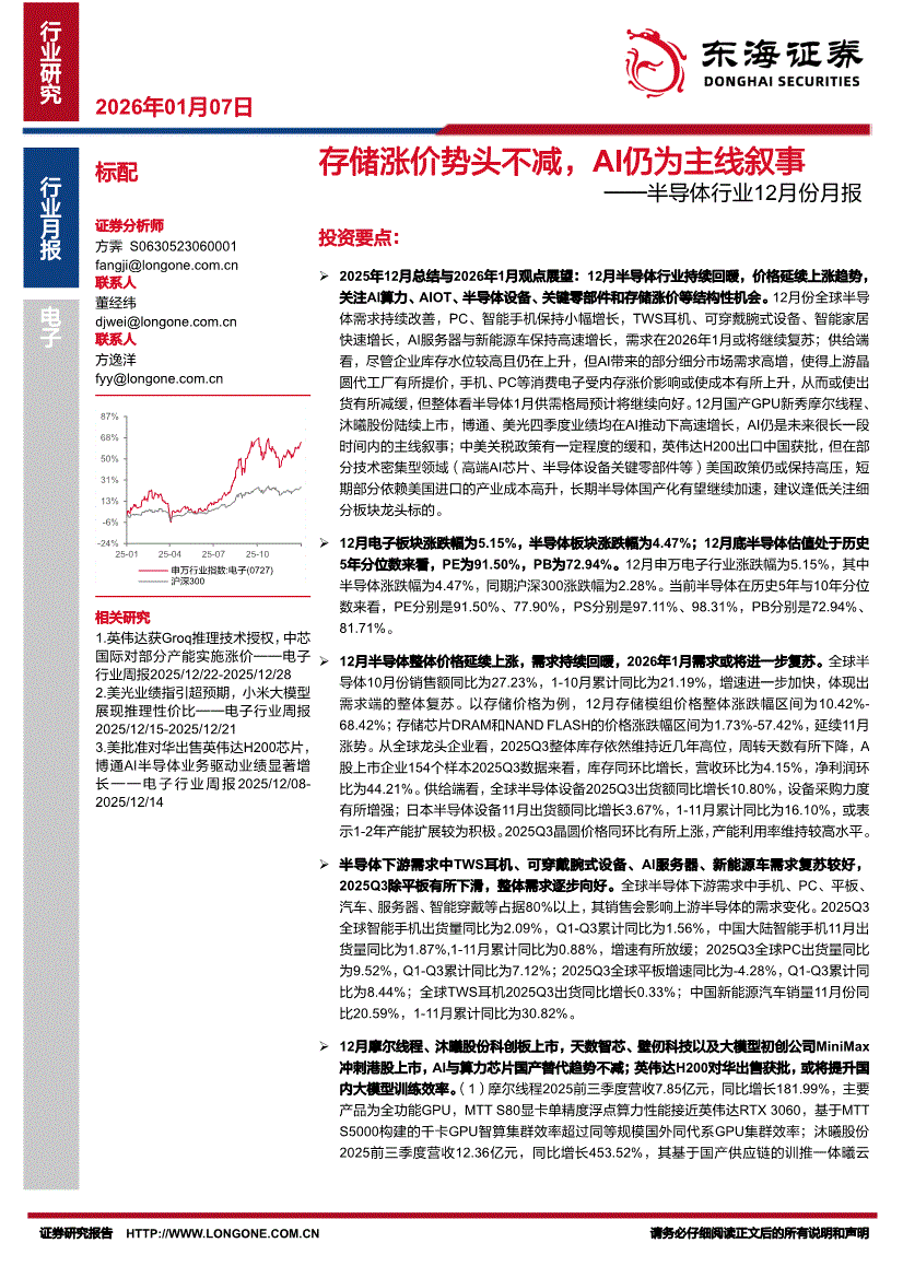 半导体行业:东海证券-半导体行业12月份月报:存储涨价势头不减,AI仍为主线叙事-260107