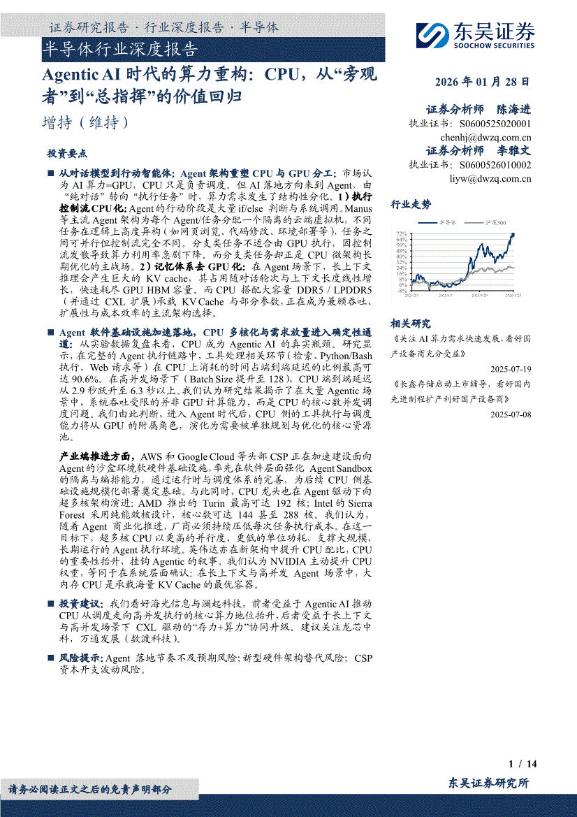 半导体行业:东吴证券-半导体行业深度报告:Agentic AI时代的算力重构,CPU,从“旁观者”到“总指挥”的价值回归-260128
