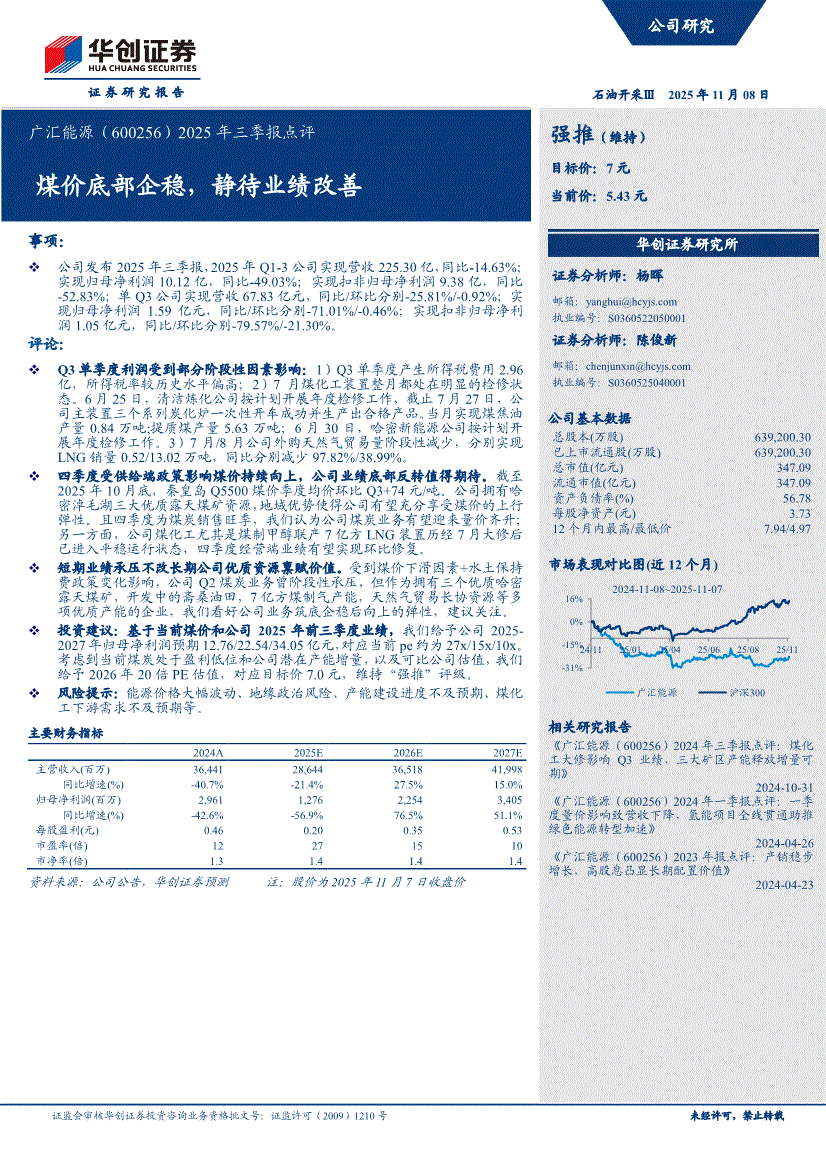 广汇能源:华创证券-广汇能源-600256-2025年三季报点评:煤价底部企稳,静待业绩改善-251108