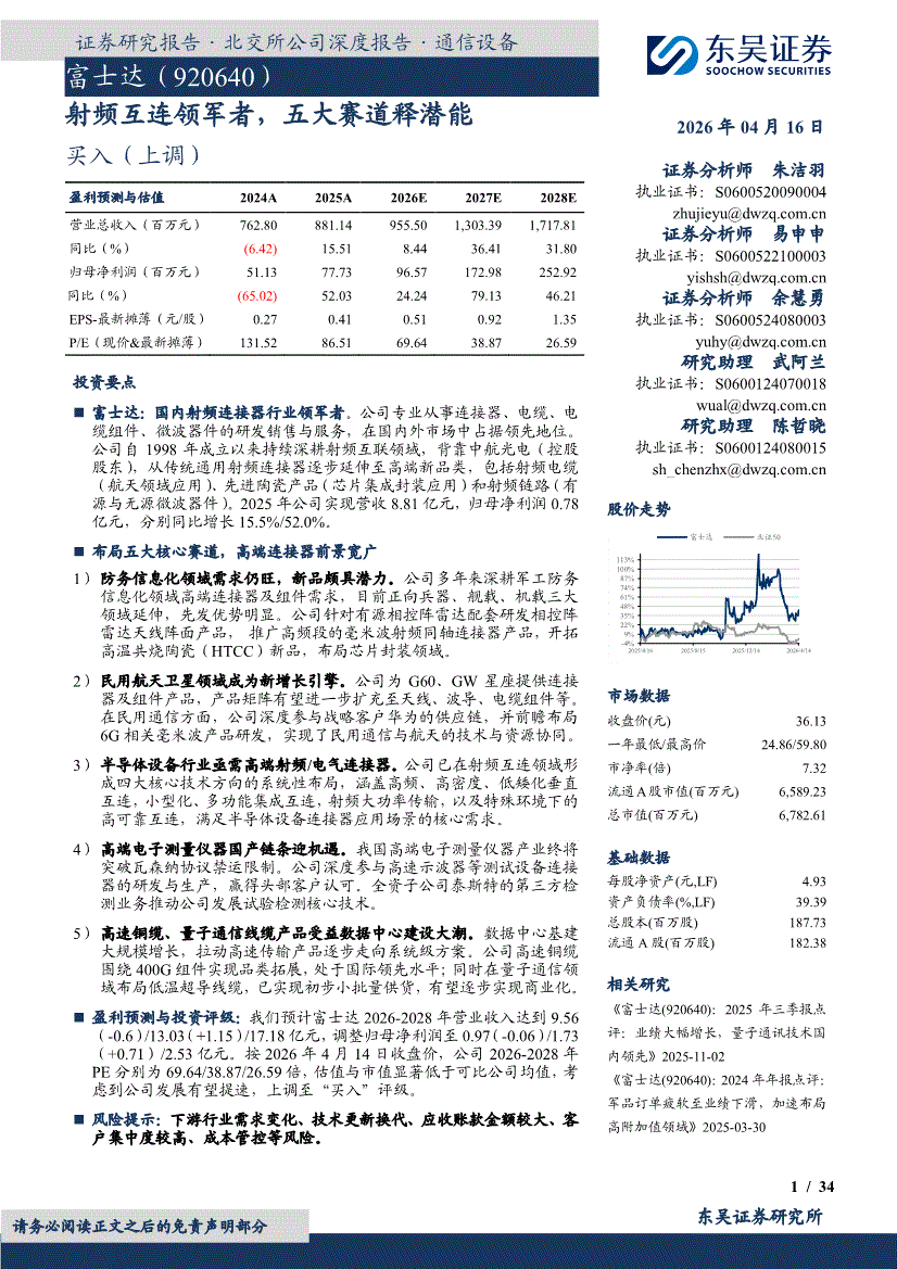 富士达:东吴证券-富士达-920640-射频互连领军者,五大赛道释潜能-260416