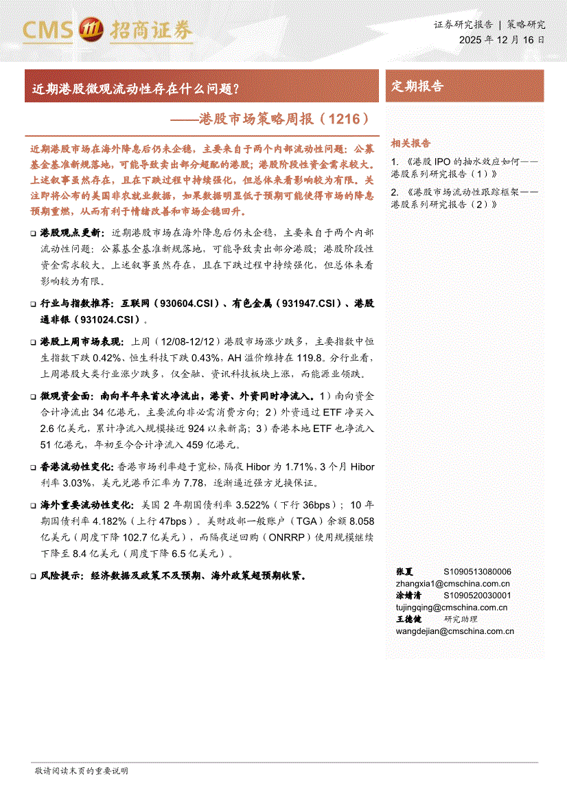 招商证券-港股市场策略周报:近期港股微观流动性存在什么问题?-251216