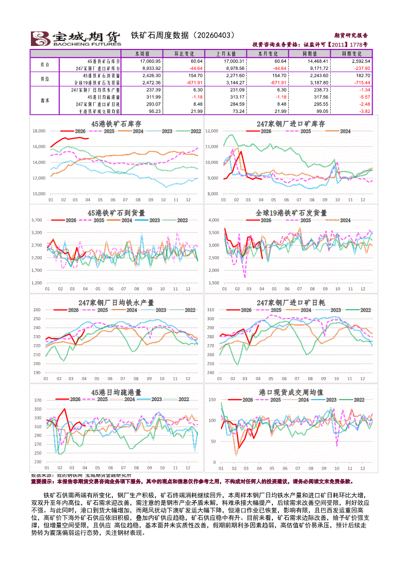宝城期货-铁矿石周报:海外扰动不断,矿价高位震荡-260329