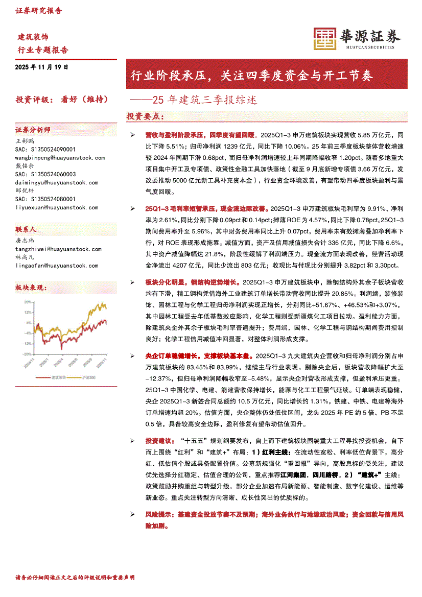 建筑装饰行业:华源证券-建筑装饰行业25年建筑三季报综述:行业阶段承压,关注四季度资金与开工节奏-251119