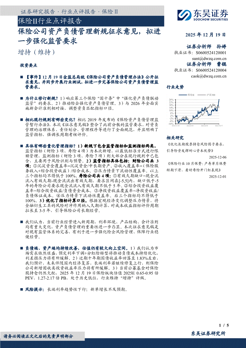 保险行业:东吴证券-保险Ⅱ行业点评报告:保险公司资产负债管理新规征求意见,拟进一步强化监管要求-251219
