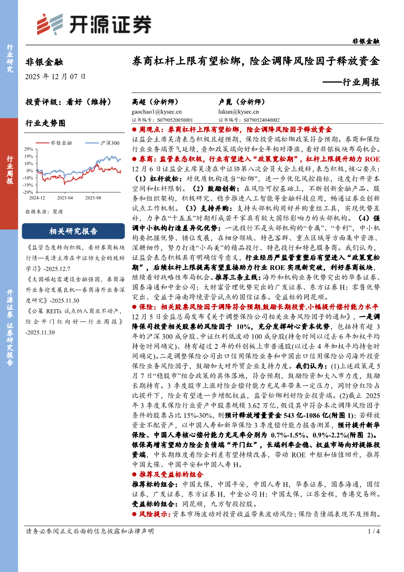 非银金融行业:开源证券-非银金融行业周报:券商杠杆上限有望松绑,险企调降风险因子释放资金-251207