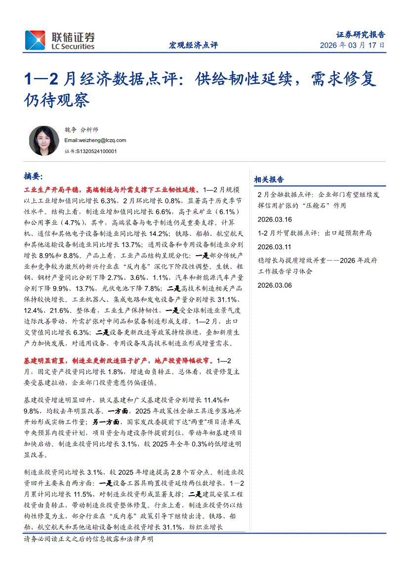 联储证券-1—2月经济数据点评:供给韧性延续,需求修复仍待观察-260317