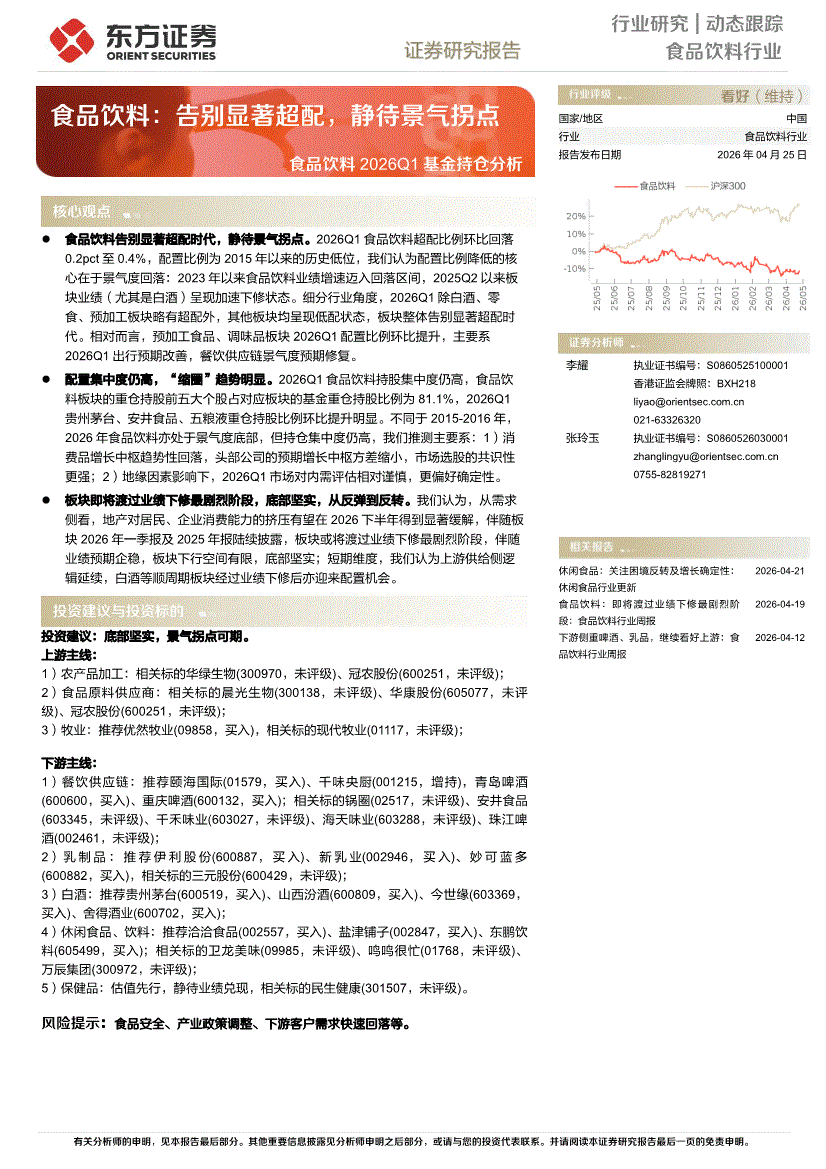 食品饮料行业:东方证券-食品饮料行业2026Q1基金持仓分析:告别显著超配,静待景气拐点-260425