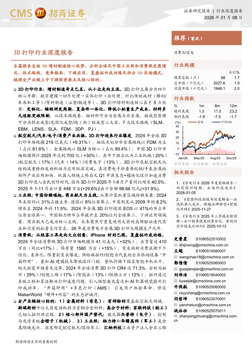 3D打印行业:招商证券-3D打印行业深度报告:奇点时刻,3D打印工业与消费共振,迎来技术与成本拐点-260108