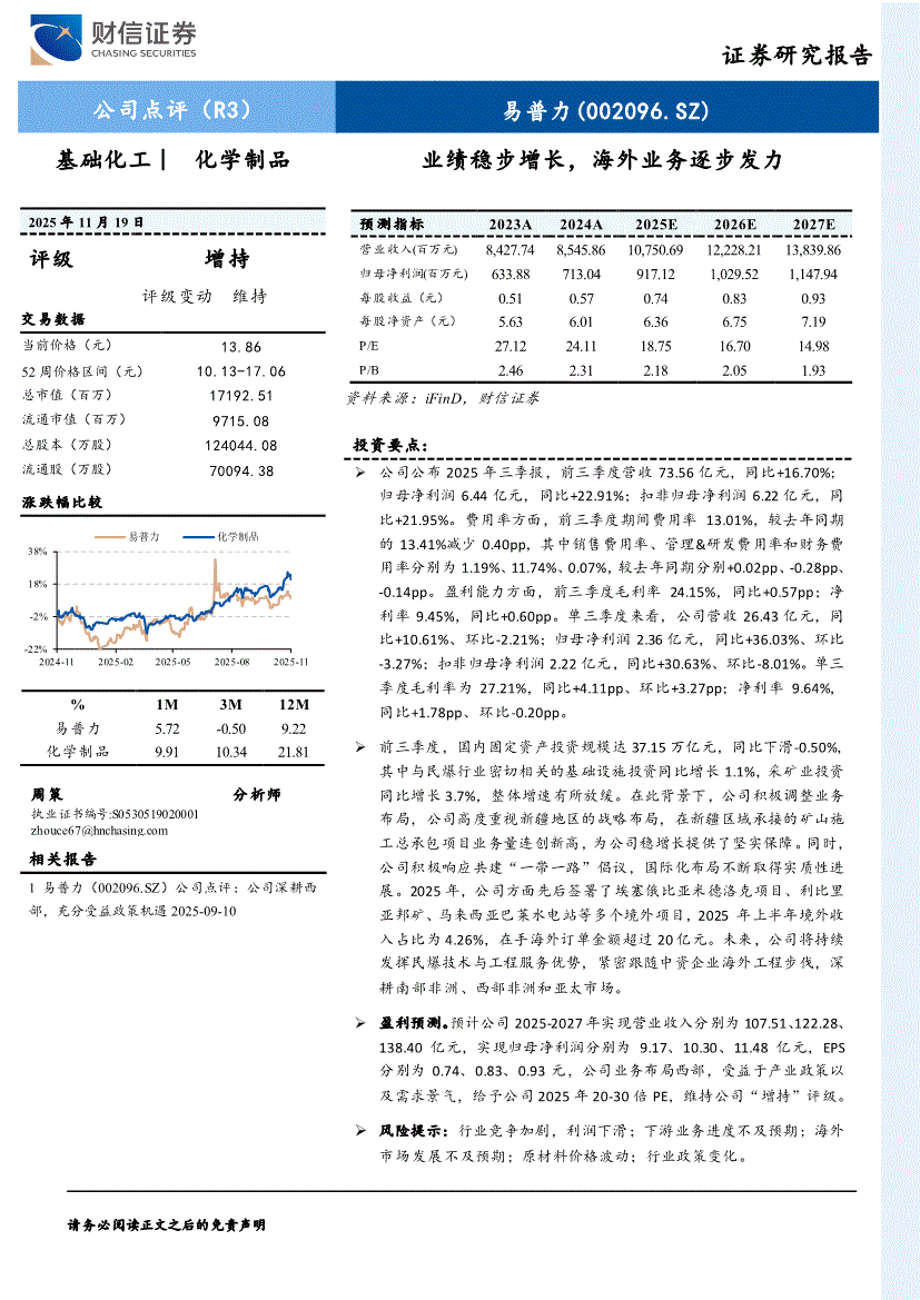 易普力:财信证券-易普力-002096-业绩稳步增长,海外业务逐步发力-251119