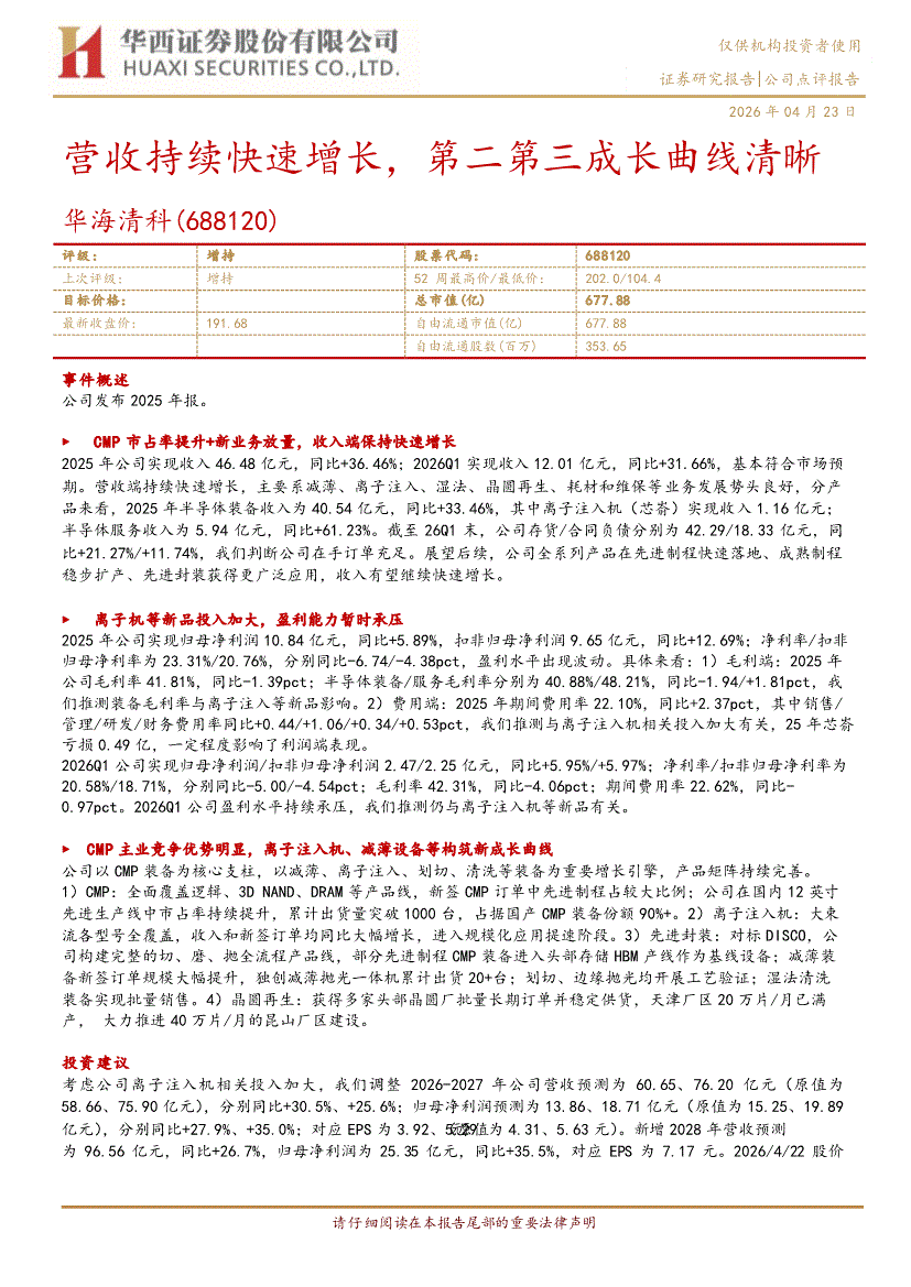 华海清科:华西证券-华海清科-688120-营收持续快速增长,第二第三成长曲线清晰-260423