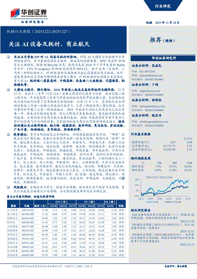机械行业:华创证券-机械行业周报:关注AI设备及耗材、商业航天-251228