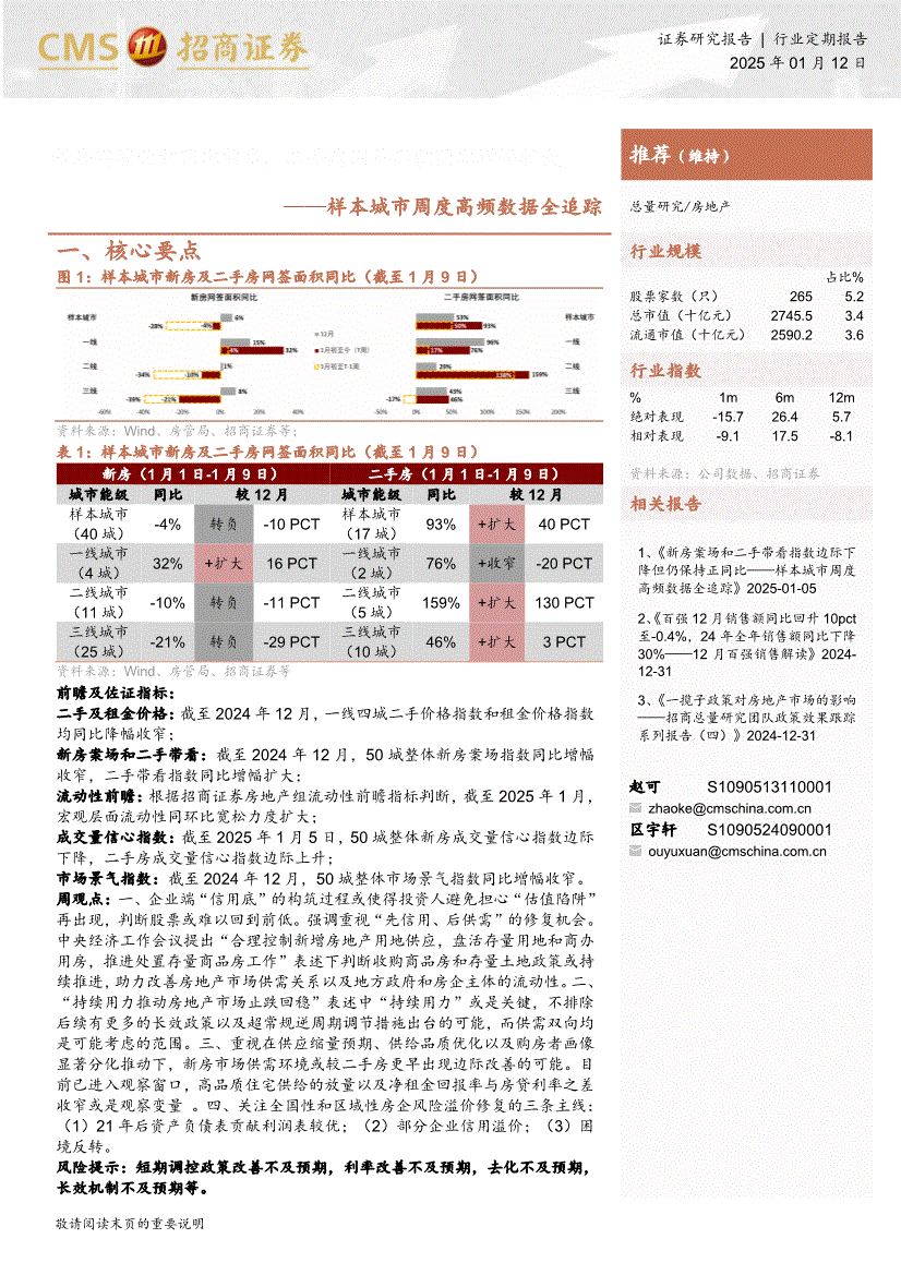 房地产行业:招商证券-房地产行业样本城市周度高频数据全追踪:新房网签面积同比转负,二手房网签面积同比增幅扩大-250112