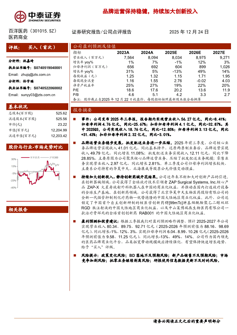 百洋医药:中泰证券-百洋医药-301015-品牌运营保持稳健,持续加大创新投入-251224
